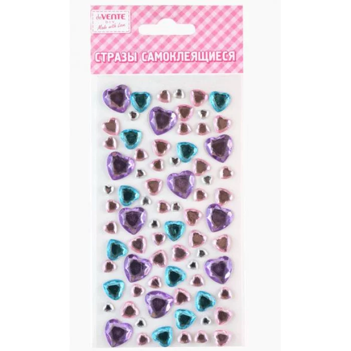 Стразы самоклеящиеся "deVENTE. Heart mix.3" цвет ассорти, карточка 8x16 см, в пластиковом пакете с блистерным подвесом