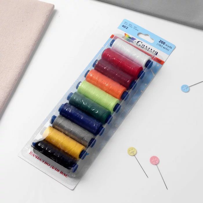 Нитки цена за 1 шт, 40/2 200ярд полиэстер ассорти №08 Gamma