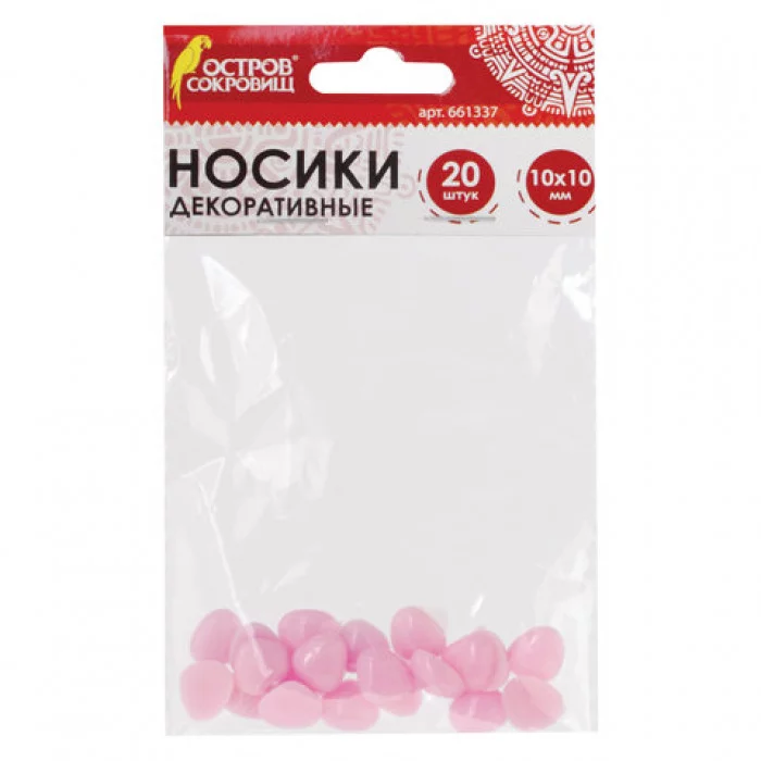 Набор декоративных носиков ОСТРОВ СОКРОВИЩ придаст уникальность и неповторимость игрушкам и прочим поделкам, сделанным своими руками. Декоративные носики позволят сделать игрушку живой и запоминающейся. Подходят для крепления на любых материалах, имеют поверхность без клеевой основы. Изготовлены из высококачественного пластика. Предназначены для детей от 3 лет. Размер - 10х10 мм. Поставляются в пакете с европодвесом. В наборе 20 носиков розового цвета.