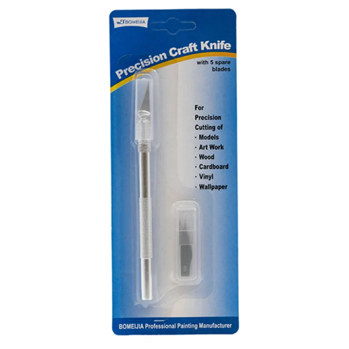 Нож канцелярский CK-165 "Макетный" металлический, 5 лезвий в комплекте , с защитным колпачком, на блистере 320255