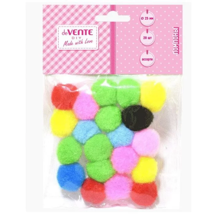 Набор помпонов для творчества "deVENTE" 25 мм, 20 шт, в пластиковом пакете с блистерным подвесом, цвета ассорти