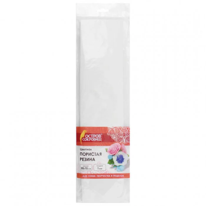 Цветная пористая резина (фоамиран) ОСТРОВ СОКРОВИЩ предназначена для хобби, творчества и рукоделия. Лист белого фоамирана формата 50х70 см позволяет создать уникальную и эффектную поделку! Толщина листа - 1 мм, что придает ему дополнительную пластичность и податливость в работе. Материал очень прост в использовании: легко режется обычными ножницами, ему можно придать любую форму растягивая и скручивая.Используется для создания флористического декора, аппликаций, сувениров, детского рукоделия и создания украшений. Готовые изделия представляют собой: аксессуары для волос (банты, ободки, резинки, короны), бижутерию, банты для подарочных упаковок, елочные игрушки. Не токсична, безопасна для детского творчества.Данный вид фоамирана можно мыть.