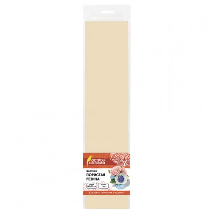 Пористая резина (фоамиран) для творчества, КРЕМОВАЯ, 50х70 см, 1 мм, ОСТРОВ СОКРОВИЩ