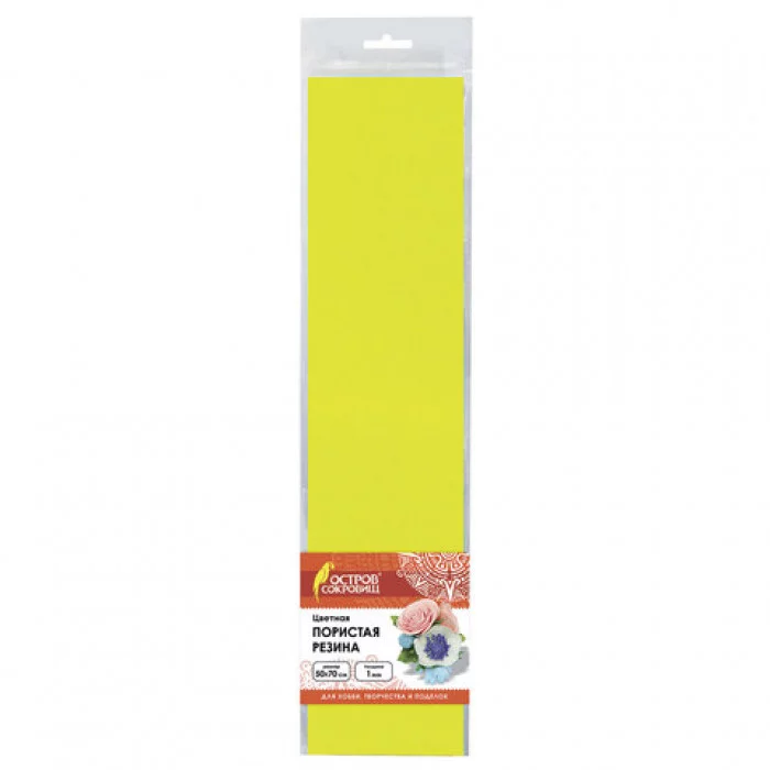 Пористая резина (фоамиран) для творчества, ЛИМОННАЯ, 50х70 см, 1 мм, ОСТРОВ СОКРОВИЩ