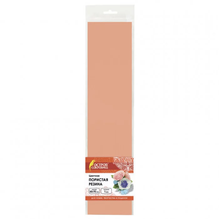 Пористая резина (фоамиран) для творчества, ПЕРСИКОВАЯ, 50х70 см, 1 мм, ОСТРОВ СОКРОВИЩ