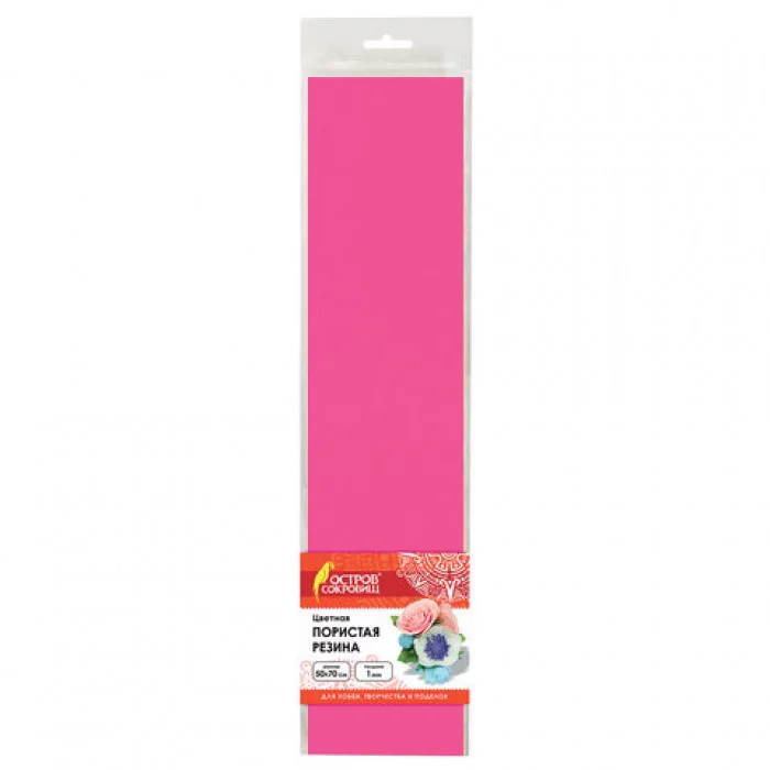 Пористая резина (фоамиран) для творчества, РОЗОВАЯ, 50х70 см, 1 мм, ОСТРОВ СОКРОВИЩ, 661680