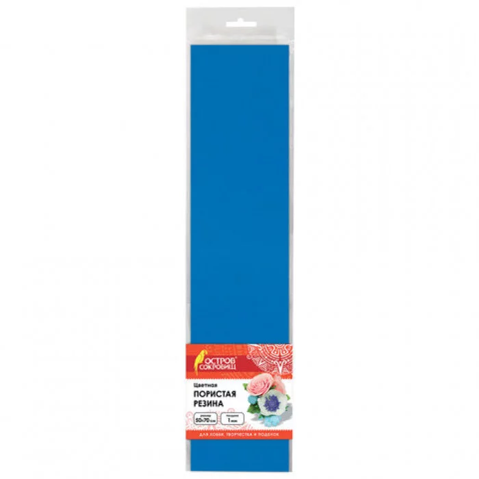 Пористая резина (фоамиран) для творчества, СИНЯЯ, 50х70 см, 1 мм, ОСТРОВ СОКРОВИЩ, 661686