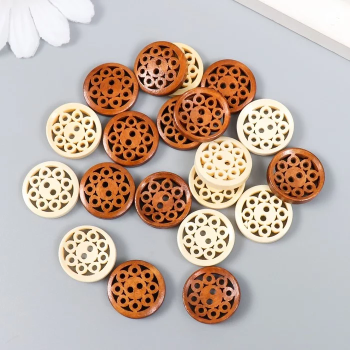 Пуговицы дерево для творчества 2 прокола "Цветок из пузырей" набор 20 шт 1,8х1,8х0,3 см МИКС