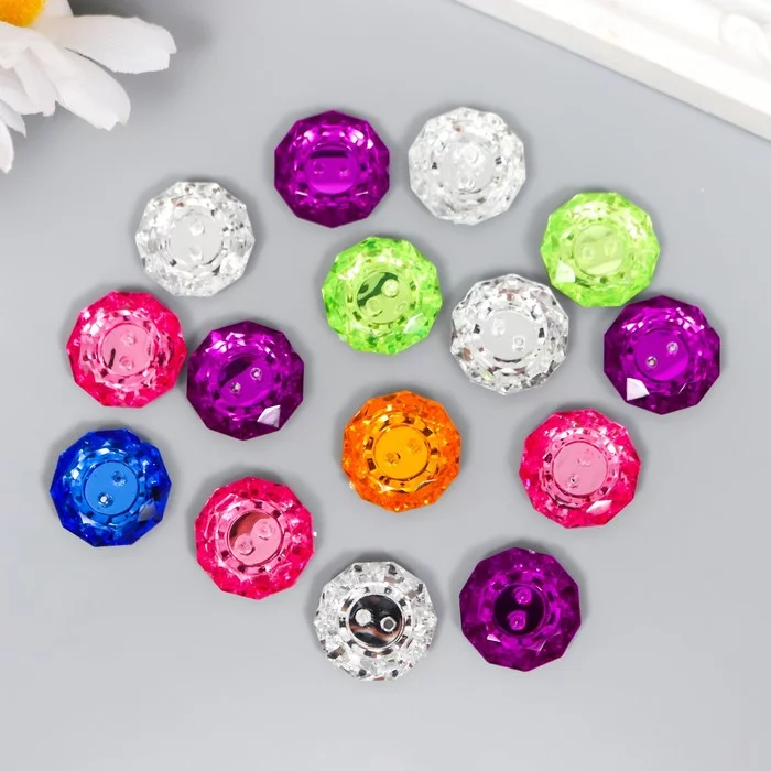 Пуговицы пластик для творчества 2 прокола "Кант страз" набор 15 шт МИКС d=1,8 см 7855426