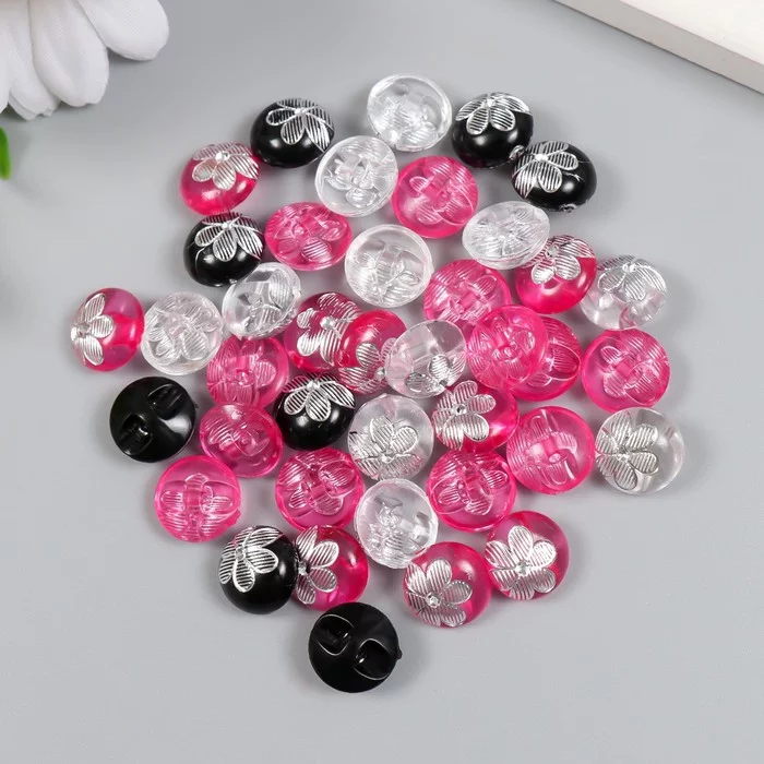 Пуговицы пластик на полуножке "Серебряный цветок" цветная МИКС набор 40 шт 1,2х1,2 см