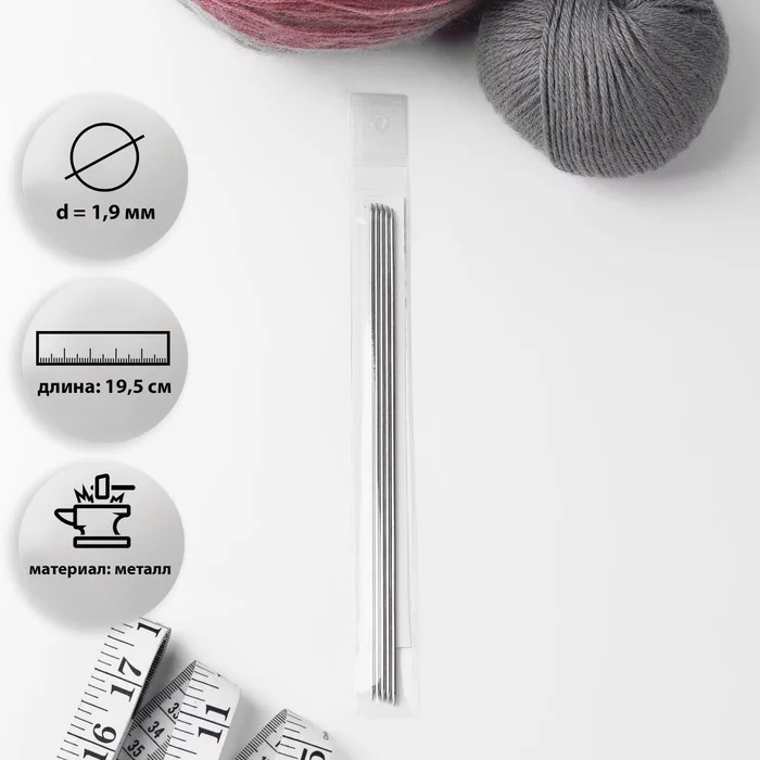 Спицы для вязания чулочные d1,9мм 19,5см (5шт) мет Арти 1295658