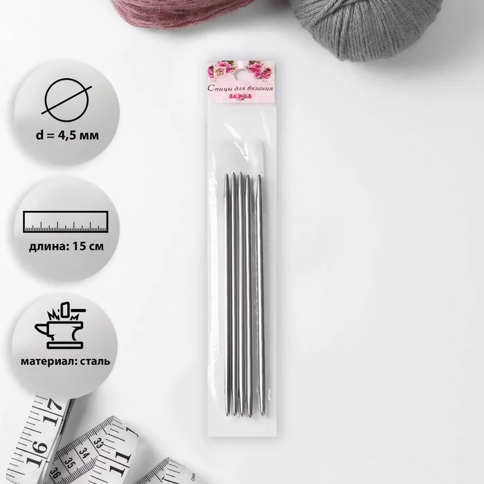 Спицы для вязания чулочные сталь 15см d4,5мм (5шт) чехол АУ 3026069