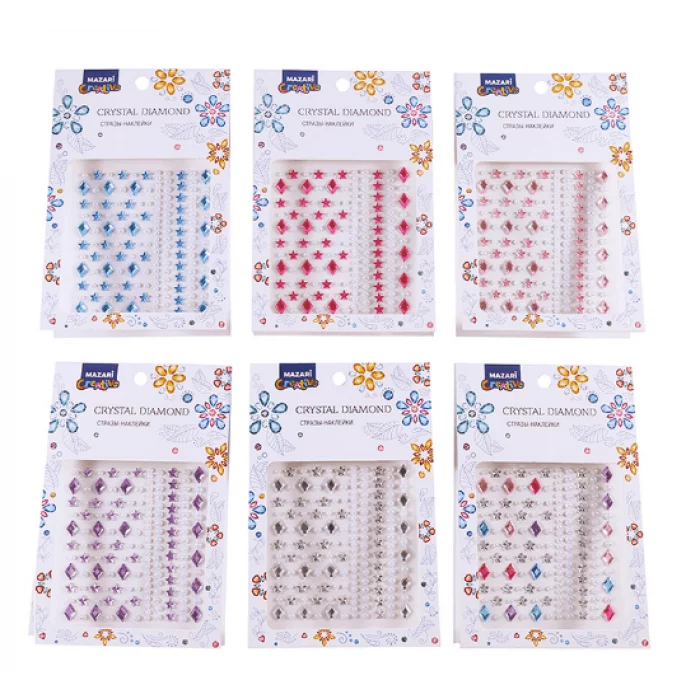 Стразы-наклейки акриловые АССОРТИ, 10.4*16 см, 6 дизайнов, ОПП-упаковка с европодвесом M-8645