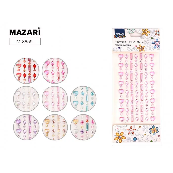 Стразы-наклейки акриловые АССОРТИ-11, 22*9, 5 см, 8 дизайнов, ОПП-упаковка с европодвесом M-8659