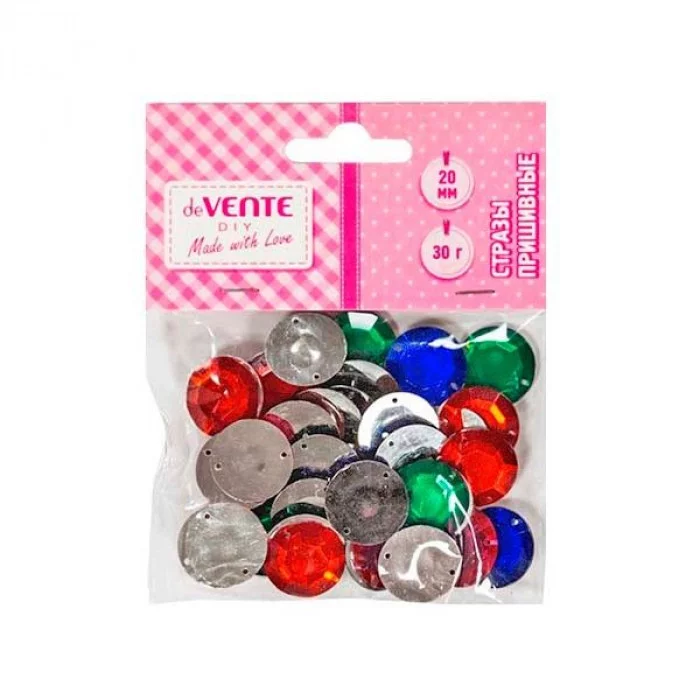 Стразы пришивные "Круглые" d20мм ассорти пакет е/п DEVENTE 8002385 858351