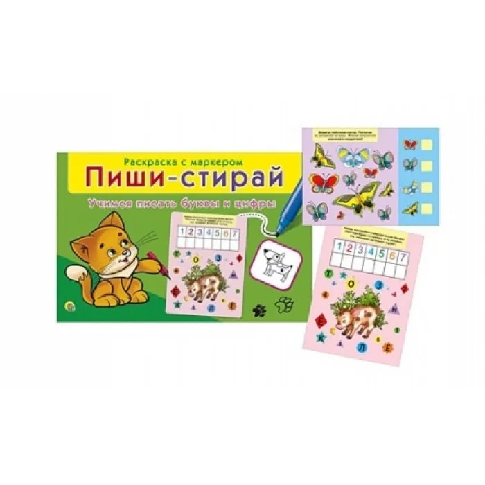 Раскраска с маркером "Пиши-стирай. Пишем правильно буквы и цифры", 28,5*19*3 см