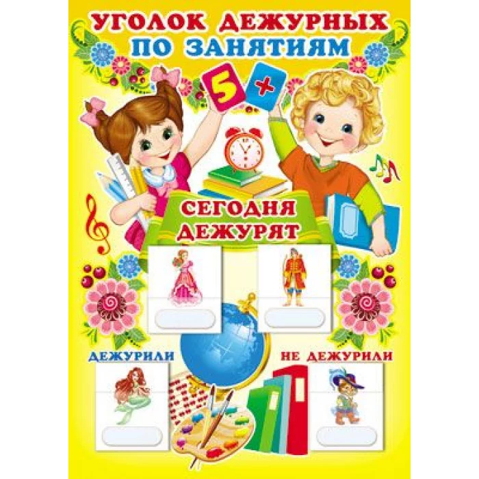 Уголок дежурных по занятиям А3 с пластиковыми карманами и карточками 30 шт (мальчик и девочка) 00-00003789