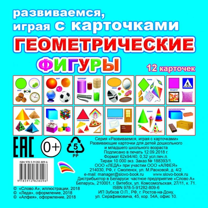 Обучающие карточки (европодвес). Геометрические фигуры 0+