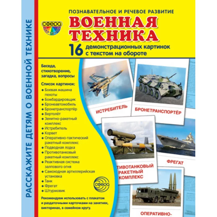 16 цветных демонстрационных карточек (картинок) и адресован детям и их родителям, желающим познакомиться с современными военными профессиями, узнать много интересного из жизни военнослужащих разных родов войск.