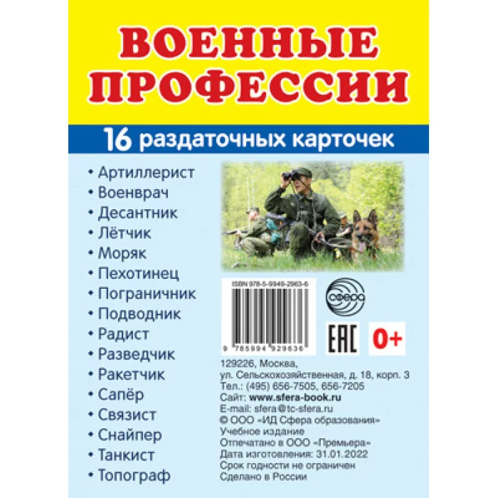Дем. картинки СУПЕР Военные профессии. 16 раздаточных карточек с текстом (63х87 мм), 978-5-9949-2963-6