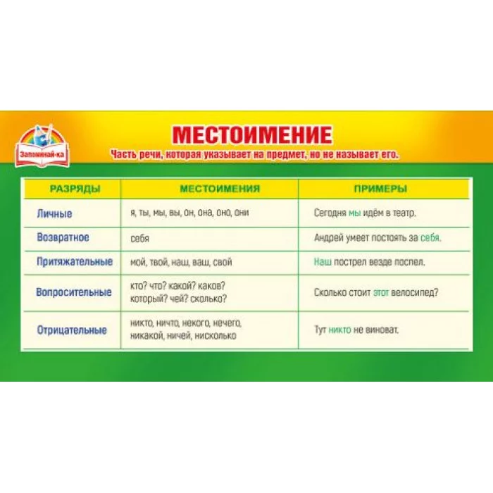 Карточка обучающая а6 "Местоимение" Мир поздравлений 80633