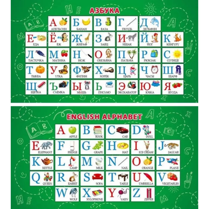 Карточка-шпаргалка Алфавит русский. английский 1-80-0025