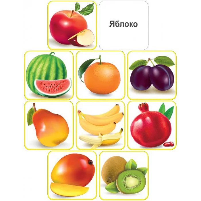 Учебно-игровой комплект с раннего возраста познакомит малыша с фруктами и ягодами.