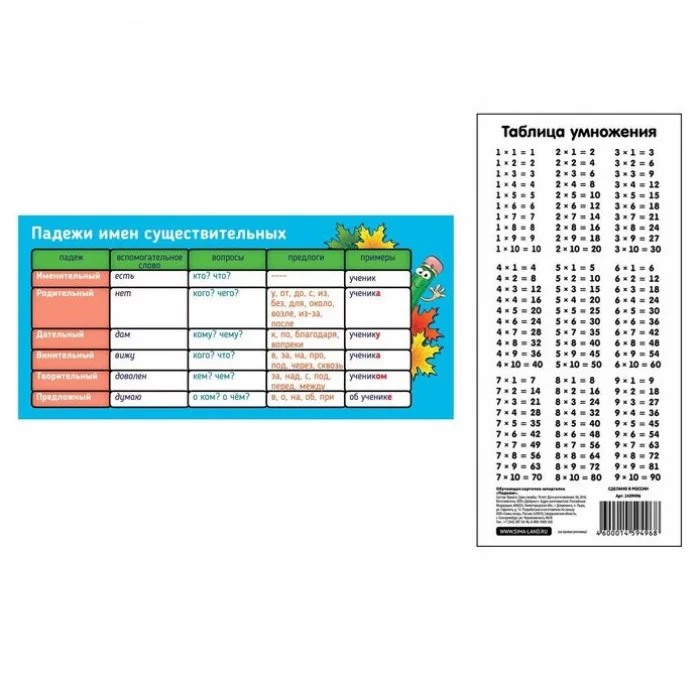 Обучающая карточка-шпаргалка "Падежи" 1459496