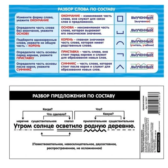 Обучающая карточка-шпаргалка "Разбор слова и предложения по составу" 1619657