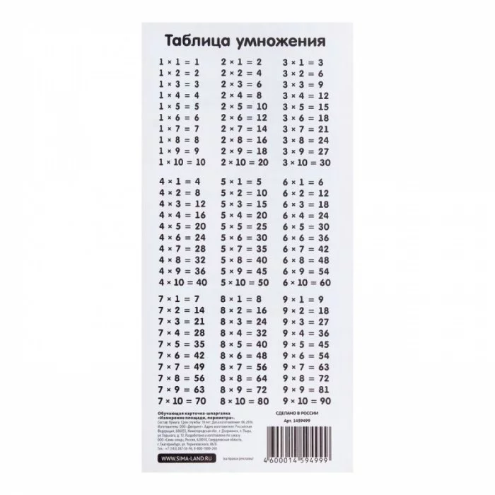 Обучающая карточка-шпаргалка "Таблица умножения" 1459498