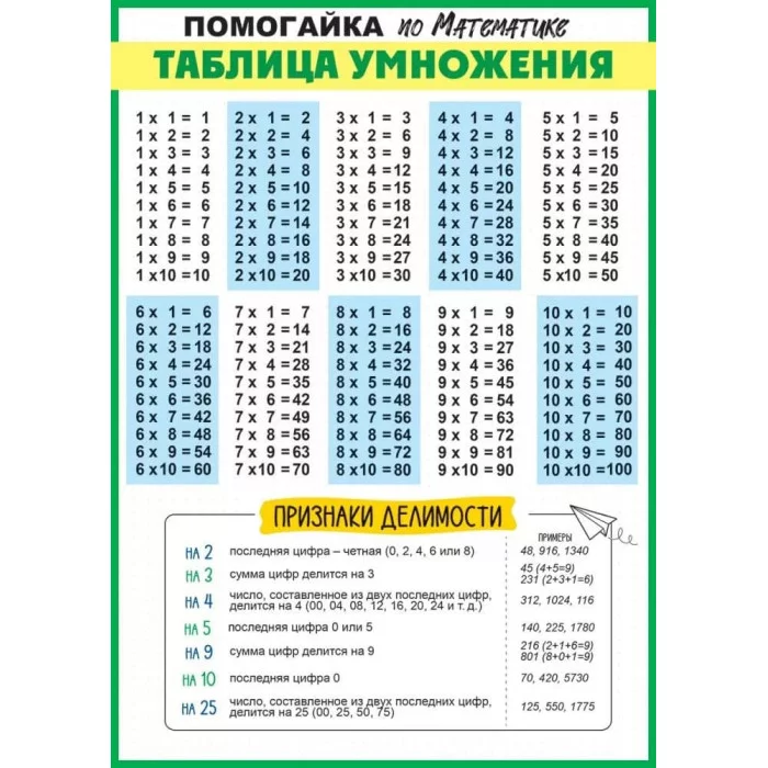 Плакат-шпаргалка "Таблица умножения" 85.650