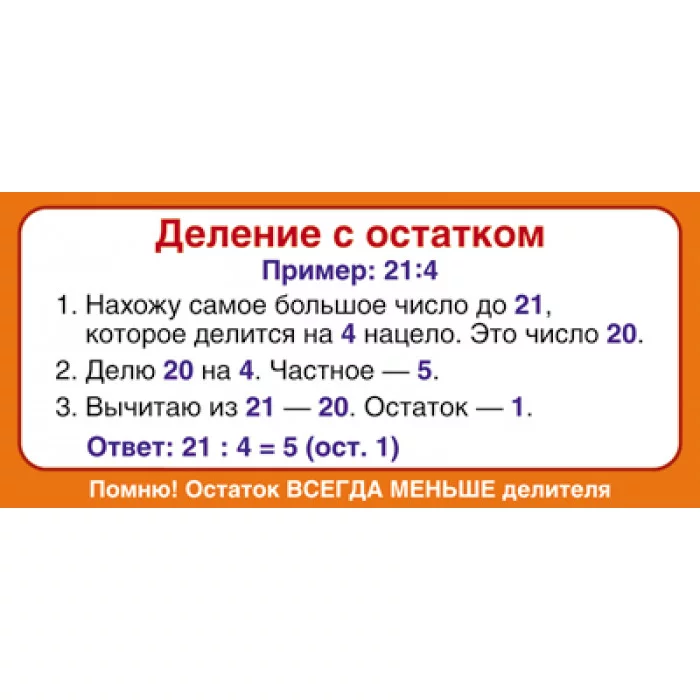 ШМ-12839 Карточка. Запомни! Деление с остатком (формат 61 х 131 мм) / Карточки Сфера (о) демонстрационные 4650118151321