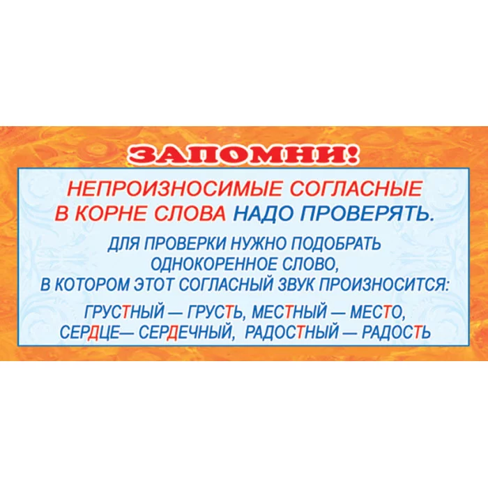 ШМ-3592 Карточка. Запомни! Непроизносимые согласные в корне слова (формат 61х131 мм) / Карточки Сфера (о) демонстрационные