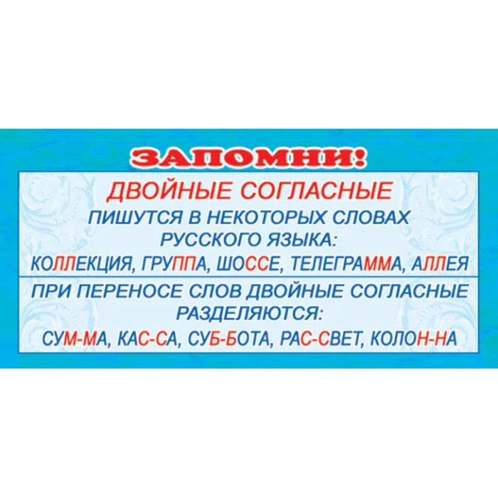 ШМ-3593 Карточка. Запомни! Двойные согласные (формат 61х131 мм), 460709144040903593