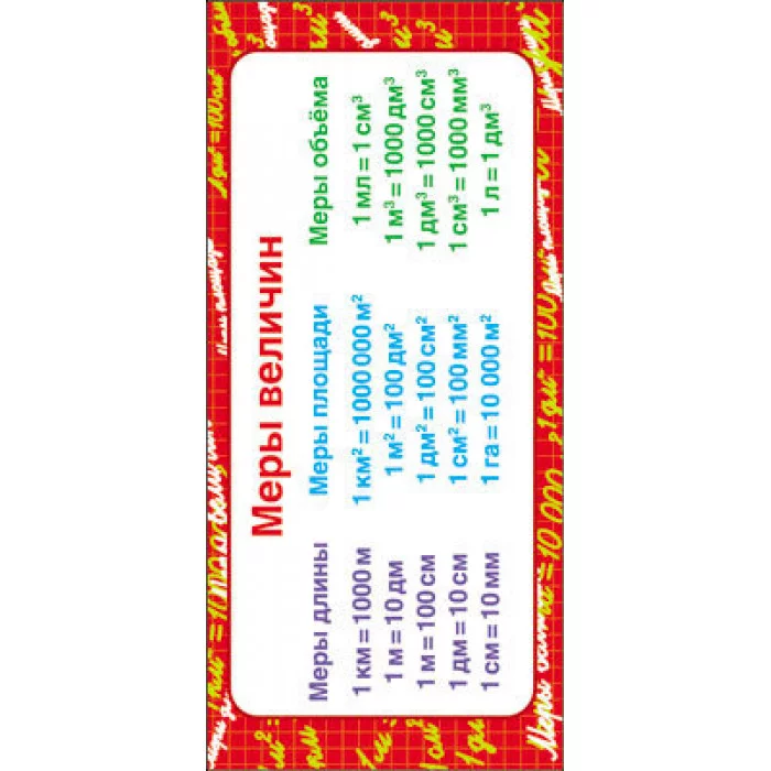 ШМ-7710 Карточка. Меры величин (формат 61х131 мм), 4607811854295