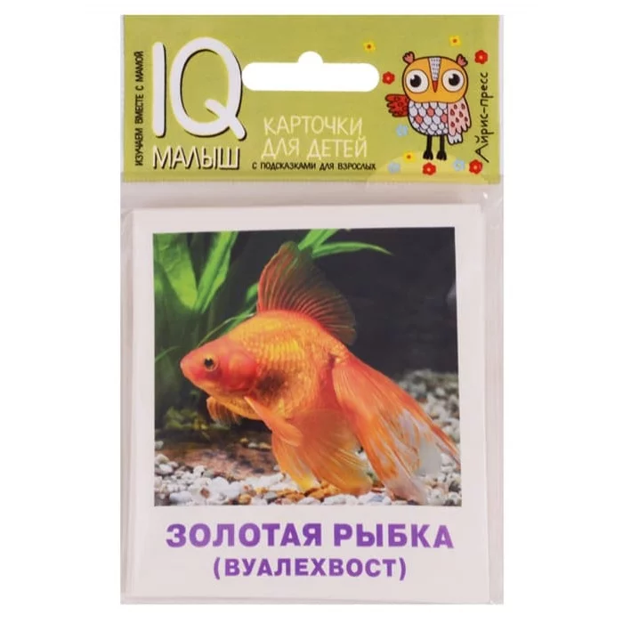 Набор двусторонних карточек познакомит ребёнка с аквариумными рыбами.