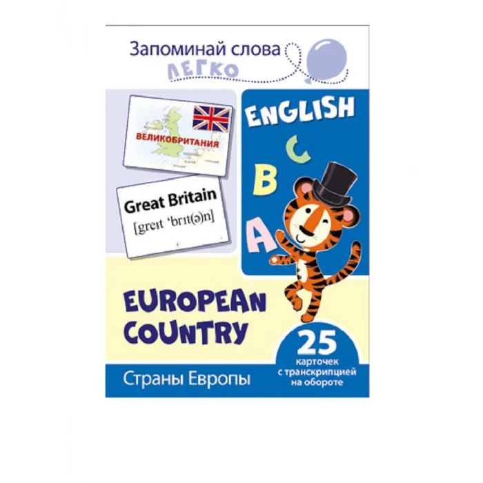 Комплект « Страны Европы» удобно составлен для ребенка: ему достаточно рассмотреть цветные рисунки, чтобы запомнить написание связанных с ними слов. Это поможет развить зрительное восприятие и сформировать ассоциативную связь между рисунком и его названием на английском языке.
