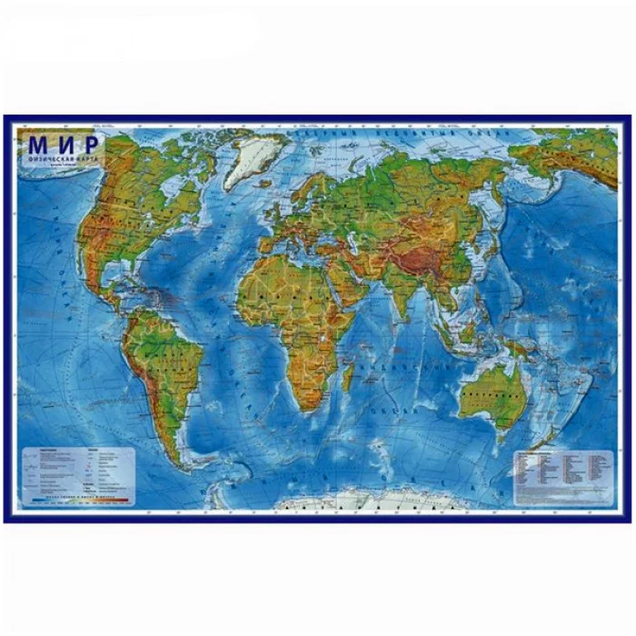 Карта Мира физическая М1:25млн 120*78 ламин тубус GLOBEN КН049 420375