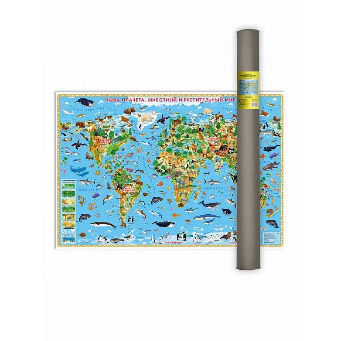 Эта настенная карта отлично подойдёт для первого знакомства ребёнка с многообразием животных, птиц, а также растений нашей планеты. Яркие и красочные иллюстрации увлекут на долгое время маленького исследователя, позволив в полной мере представить, как богата природа Земли.