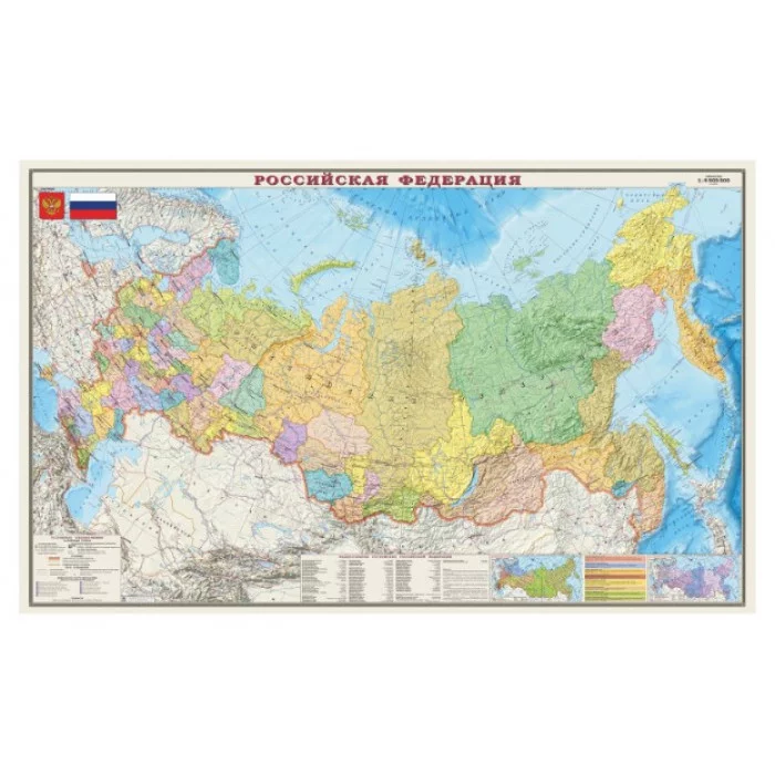 Карта настенная "Россия. Политико-административная карта", М-1:5,5 млн., размер 156х100 см, ламинированная, 316
