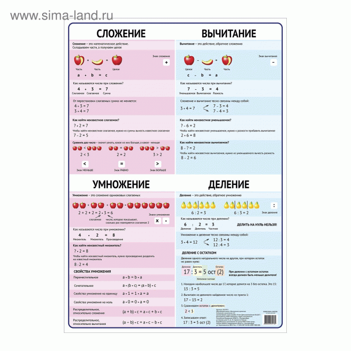 Обучающий плакат "Арифметические действия. Умножение и деление. +Сложение и вычитание." А1 2457913