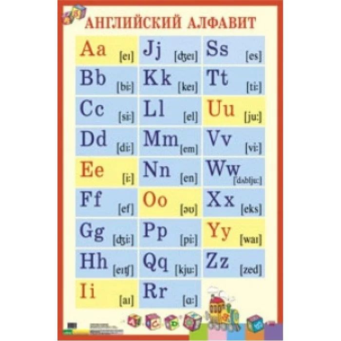 На красочно оформленном плакате помещен английский алфавит с транскрипцией.