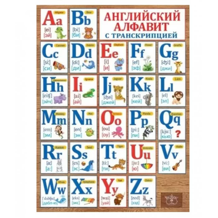 Яркий и красочный английский алфавит с транскрипцией формата А2 с первых же секунд привлекает внимание. Нетривиальное оформление, удобный шрифт и приятная цветовая гамма буквально приковывают к себе взгляд ребенка, что несомненно способствует более быстрому усвоению получаемой информации. Благодаря удобному формату плакат легко впишется в любое пространство, а оригинальный дизайн послужит отличным украшением интерьера.