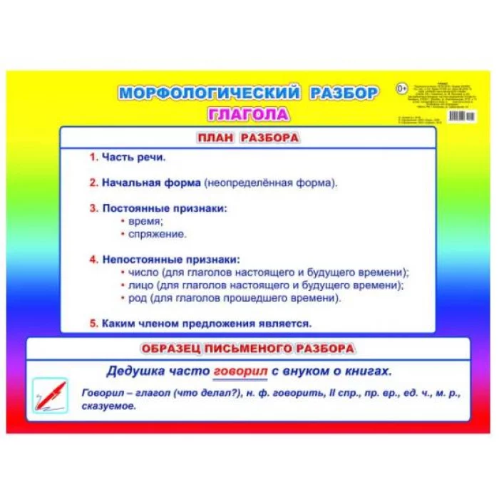 Плакат А2 Морфологический разбор глагола начальная школа 00042 0+
