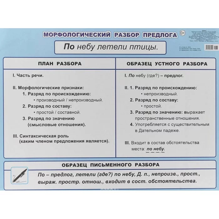 Плакат А2 Морфологический разбор предлога 5-6 класс 00034 0+