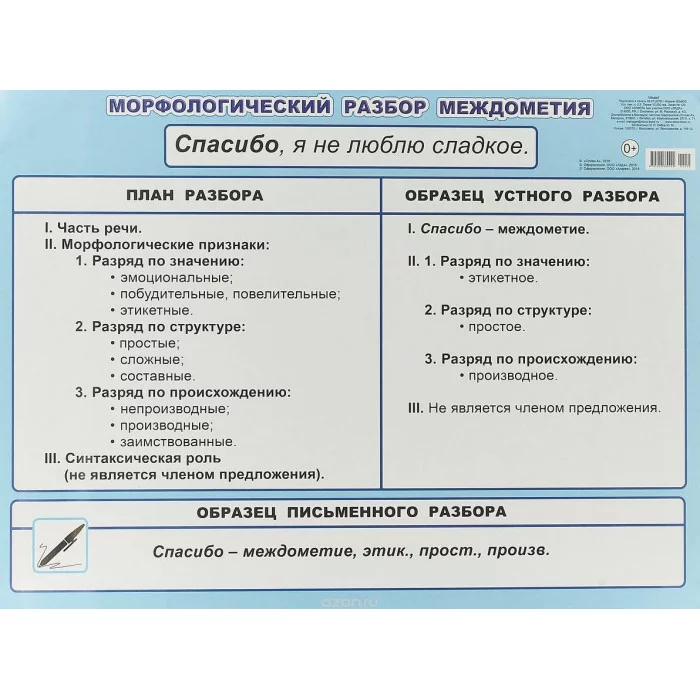Плакат А2 Морфологический разбор причастия 5-6 класс 00035 0+