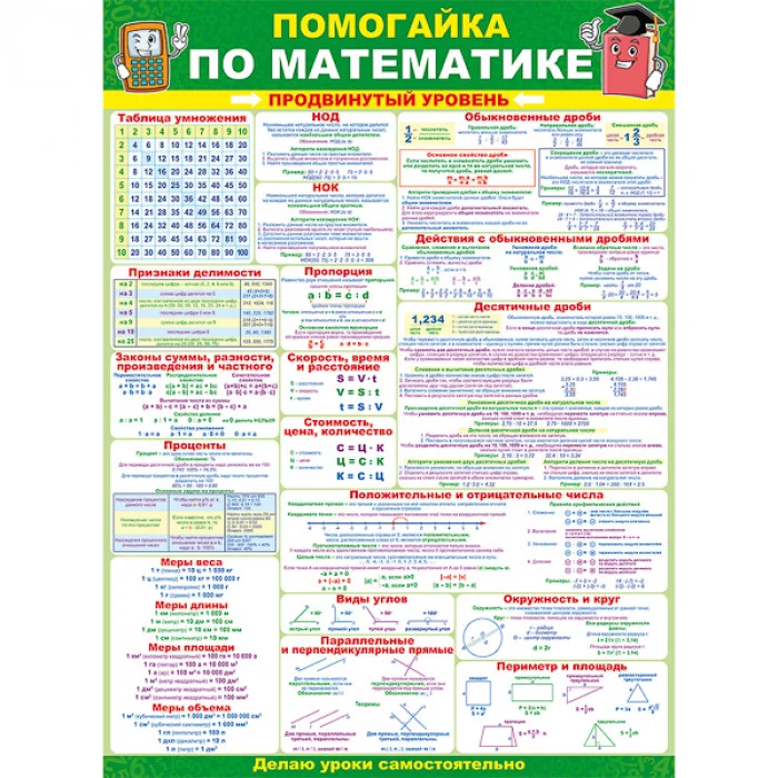 Плакат А2 "Помогайка по математике.Продвинутый уровень" ОТКРЫТАЯ ПЛАНЕТА 64.789 252606
