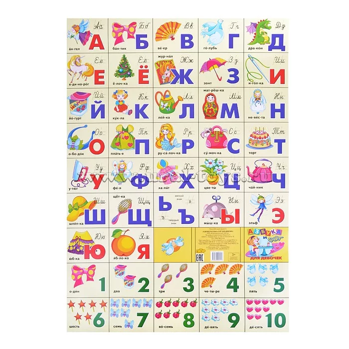 Плакат. Азбука русская разрез + счет/ДЛЯ ДЕВОЧЕК 550*770