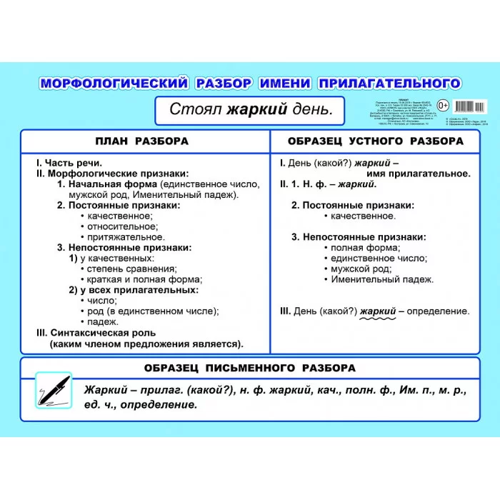 Плакат картонный. Морфологический разбор имени прилагательного 5-6кл 00033 0+