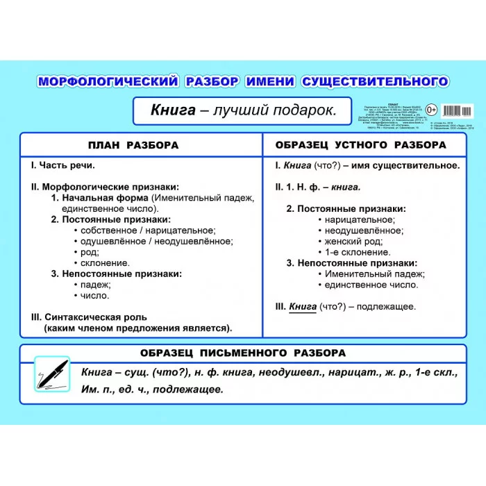 Плакат картонный. Морфологический разбор имени существительного 5-6кл00044 0+